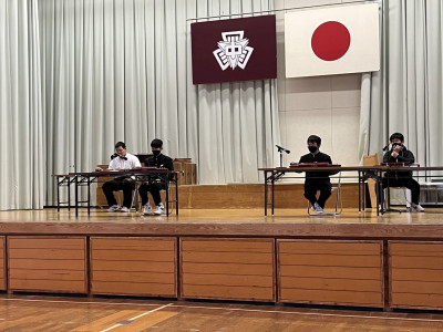教頭先生からは、学校にあるいくつかの防災備蓄品が紹介され、どこにあるのか?そのままで構わないか?と問いかけられました。また、地震にそなえて非常持ち出し袋を用意しているか?家族と避難場所・避難経路を話し合っているか?とも問いかけられましたが、多くの生徒が「している!」と答えていました。これらもとても大切なことです。