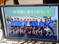 全校生徒が体育館に集まり、県総体に出場する、男子ソフトテニス、女子ソフトテニス、女子柔道、